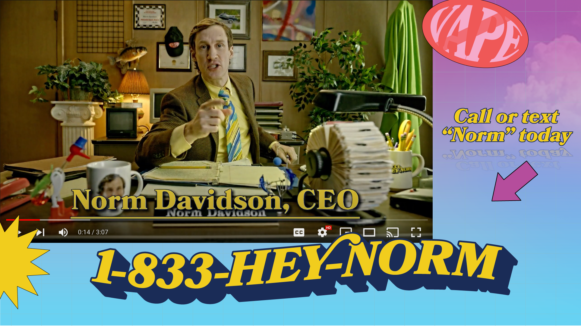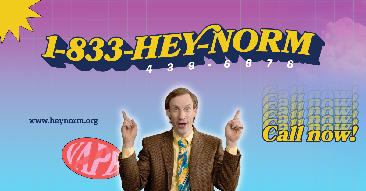 'Hey Norm' was a campaign designed to help teens discuss the harms of vaping with ease. Norm’s awkward manner added a playful touch to serious conversations. By making discussions less intimidating, we aimed to empower teens to speak up and make healthier choices together.